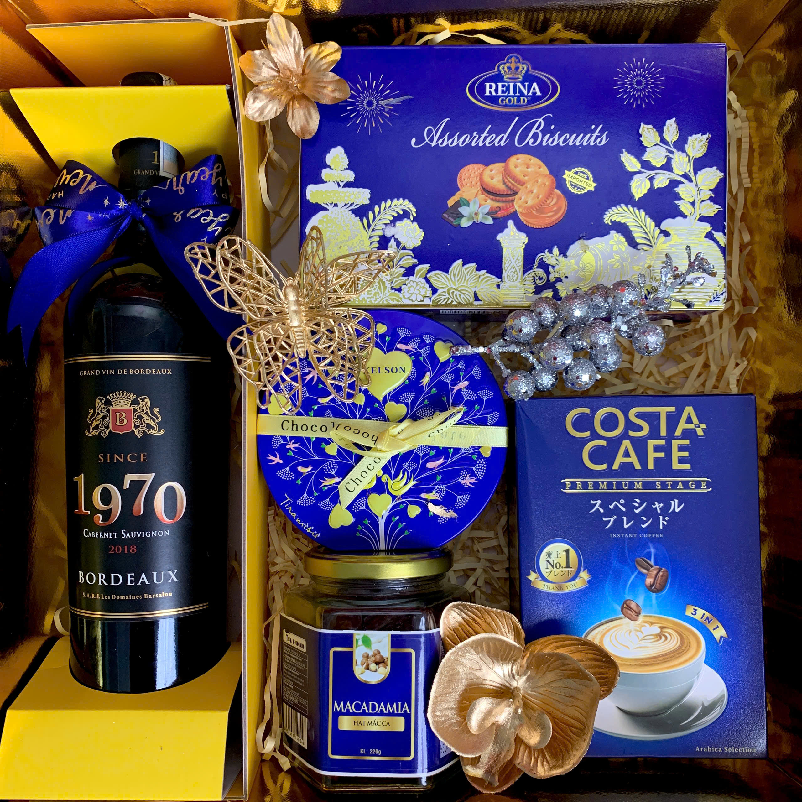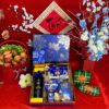 - Thiết kế sang trọng: Hộp quà phối tông đỏ – vàng – xanh dương, tượng trưng cho may mắn, tài lộc và thịnh vượng.