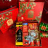 - Thiết kế sang trọng: Hộp quà phối tông đỏ – vàng – xanh dương, tượng trưng cho may mắn, tài lộc và thịnh vượng.